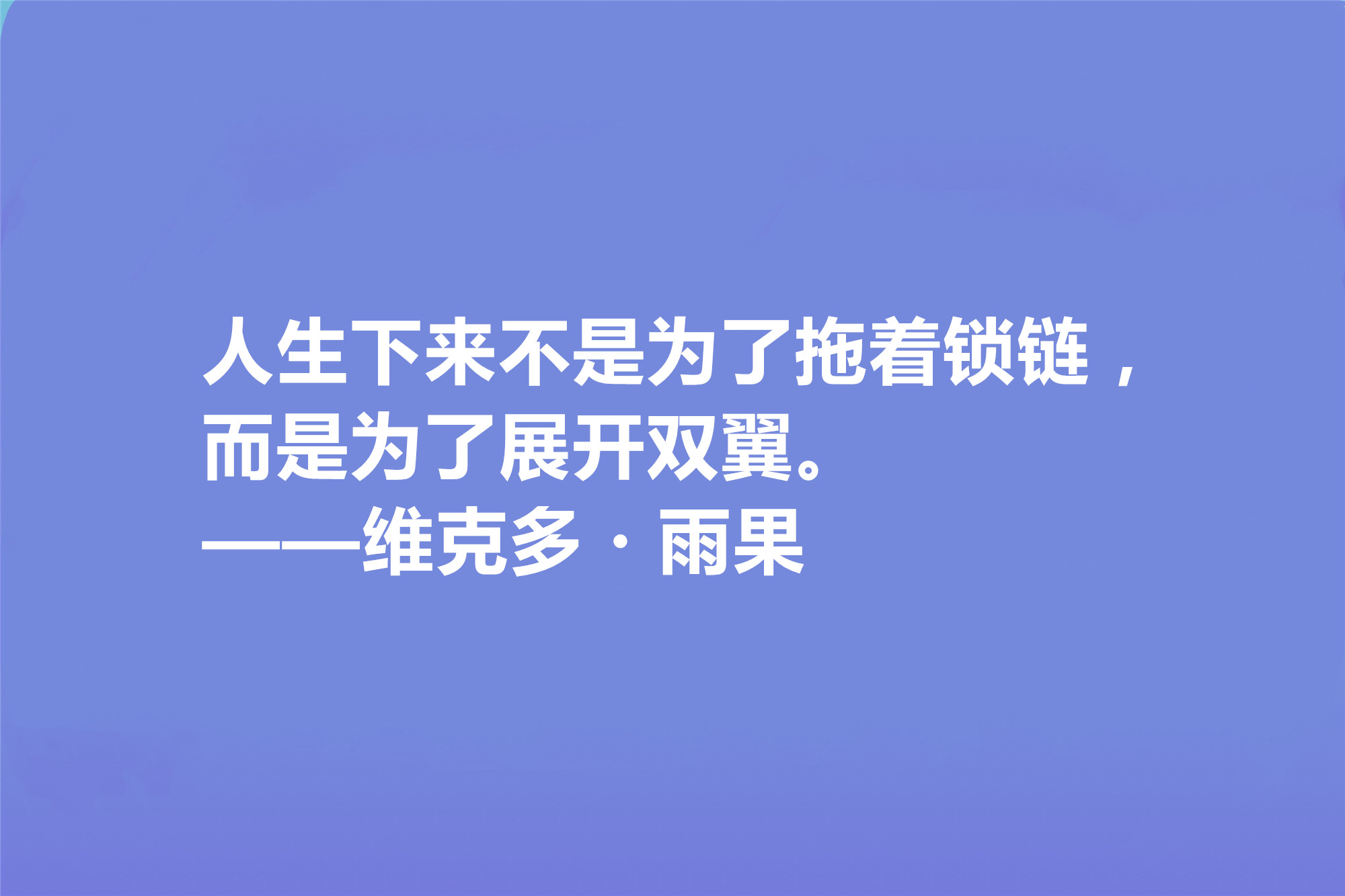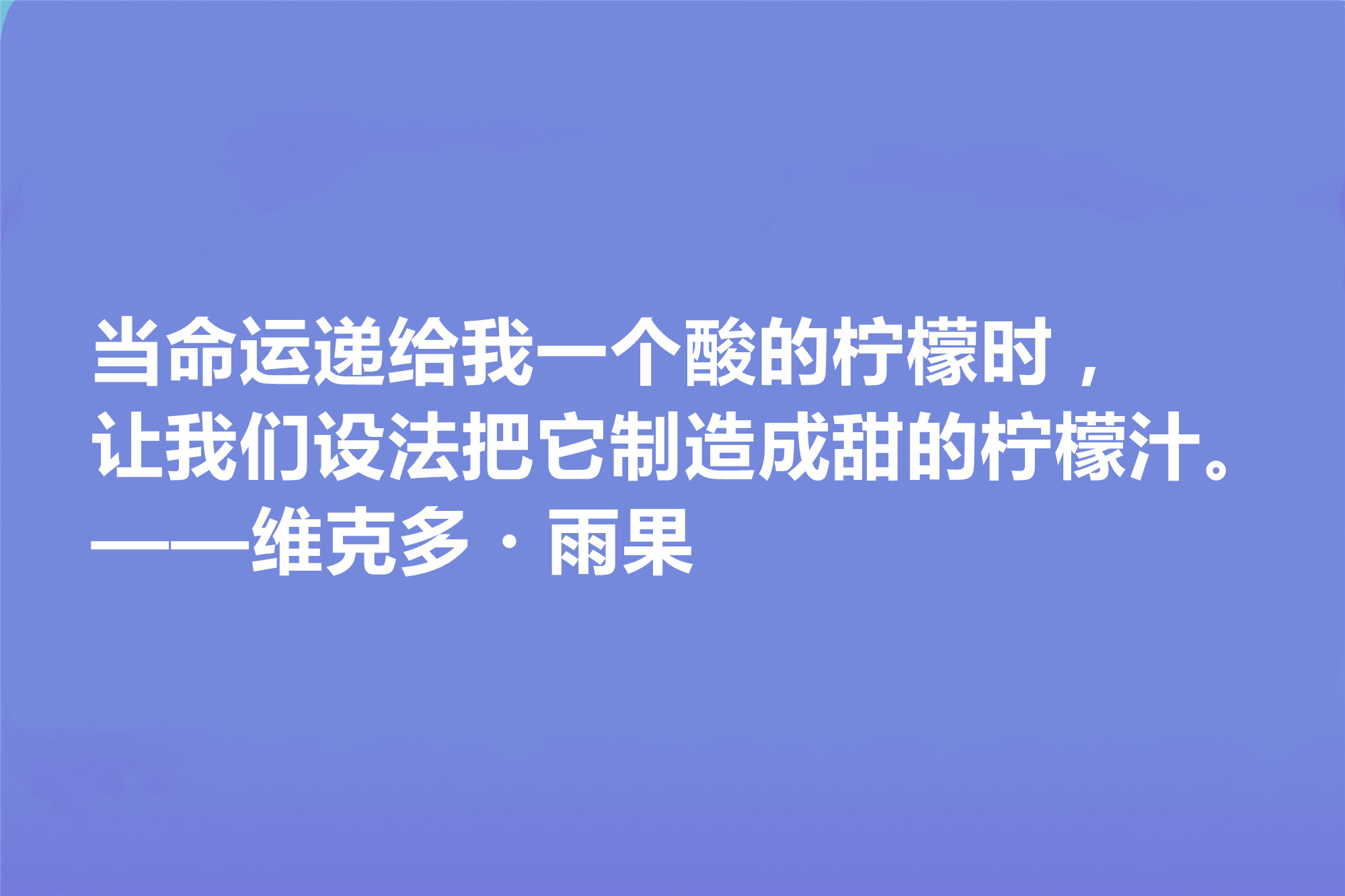 维克多·雨果作为法国文学史上的璀璨巨星,其社会地位与文学成就足以横跨时代、辉映古今。他被誉为“法兰西的莎士比亚”,是19世纪欧洲浪漫主义文学运动的领袖人物,一生获得无数殊荣——不仅当选为法兰西学院院士,成为法国文化界的精神象征,更因其作品中对人类命运的深切关怀与对社会正义的执着追求,被后世公认为“人类良心的代言人”,今天我们来欣赏他的十句格言。