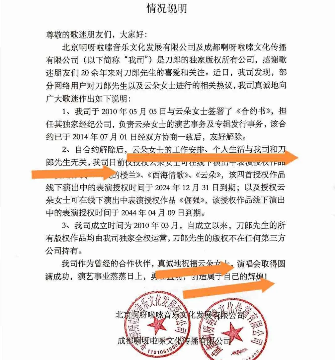 原来在刀郎被封杀期间、云朵为回归娱乐圈曾和刀郎“解除关系”、然后云朵又唱了新版的东方红!我们都知道到刀郎唱过《浏阳河》《打起手鼓唱起歌》《萨拉姆毛主席》等歌曲、感情真挚旋律优美都是歌唱毛主席的歌、而解约以后的云朵竟然在后来唱了《新东方红》、这种情感如果刀郎还是师傅、估计绝对不会允许的!