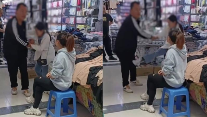 视频中,一位男子拉着自己老婆冲着一位服装店的老板说:退钱,把这个衣服退掉!