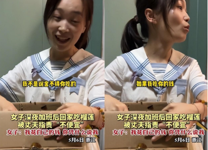 无独有偶,前几天,女孩深夜加班后,自己花了149元买了一个榴莲,结果遭来了丈夫的冷嘲热讽!