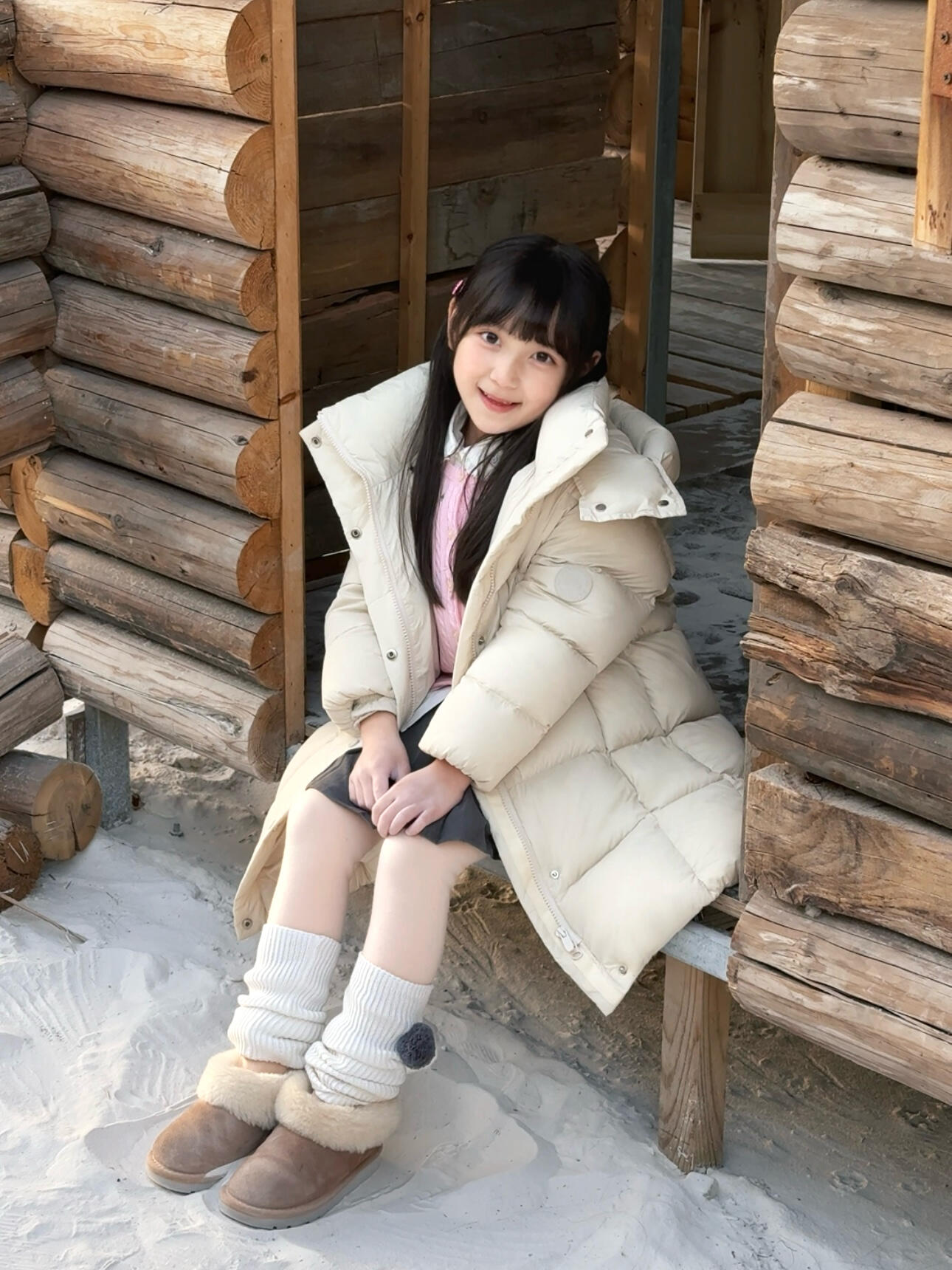 外景场景的选择上,雪地与木质建筑的组合是性价比极高的搭配。雪地作为天然的留白背景,能弱化多余元素,让孩童成为画面的绝对核心;木质建筑的纹理与质朴感,能中和雪地的清冷,增添冬日的温馨氛围,同时木质的暖色调与孩童的穿搭形成视觉呼应,让画面的色彩更和谐。