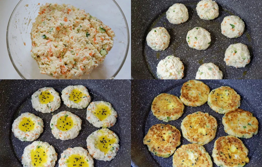 ✅ 亮点:豆腐小饼,食材搅匀煎熟就好。豆腐加黄瓜,味道惊艳到了——外焦里嫩,豆香混着黄瓜的清爽。高蛋白低脂肪,配胡萝卜和鸡蛋营养更均衡,黑芝麻增香。饱腹感又好,减肥期吃它也太合适了!