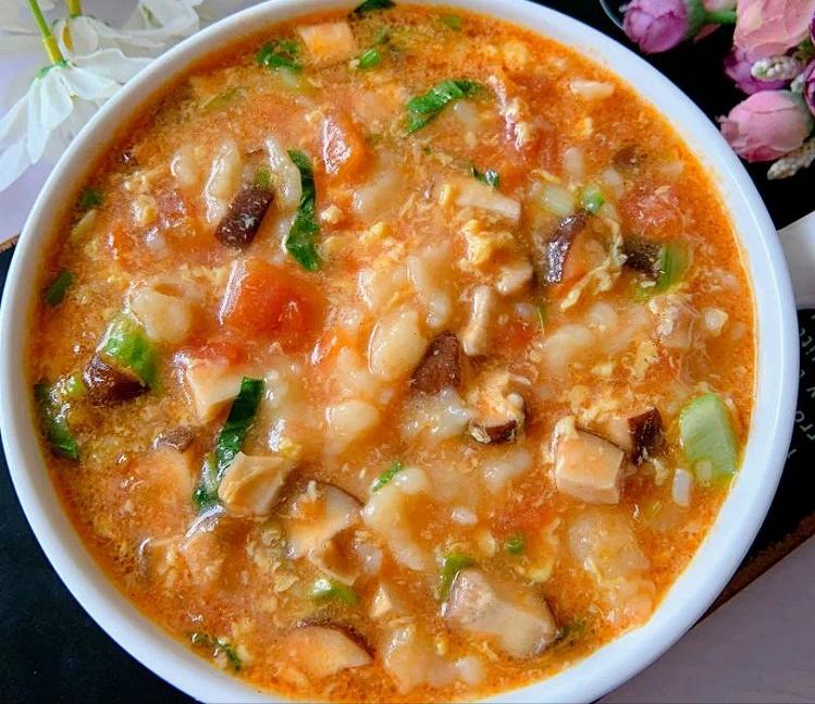 ✅ 亮点:番茄疙瘩汤,10分钟就能上桌。番茄炒出浓汁,香菇提鲜,小青菜和鸡蛋增加层次。面粉搅成小疙瘩煮进去,每一口都裹满茄汁——茄汁味浓,营养开胃,做法超简单。热乎乎一碗下肚,暖胃又舒服,全家都爱喝。