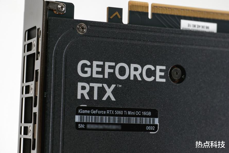 在输出接口方面,iGame RTX 5060 Ti Mini提供了3个DisplayPort 2.1b+单个HDMI 2.1b,数量与上一代一样。但与上一代不同的是,接口边上取消了一键超频按键,I/O面板看起来更为简洁,出风口也要略大一点。
