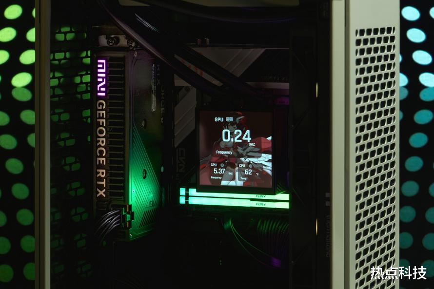 而且为了提升质感,显卡表面不是使用简单的黑漆,而是从“黑夜里的繁星”获取了灵感,通过反复调试漆料色泽、金属粉和颗粒的比例,在哑光黑底色基础上点缀了金属微粒,在显卡上呈现出星空的效果。