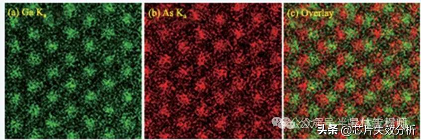 图4 GaAs半导体材料的EDS元素原子分布图 (a)Ga原子分布;(b)As原子分布;(c)Ga与As 原子分布