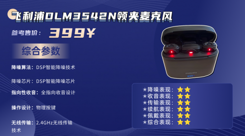 飞利浦DLM3542N采用2.4G自适应跳频传输技术,搭载基础抗干扰协议,保障日常使用中音频传输稳定。无遮挡条件下传输距离可达50米,能满足日常Vlog、家庭记录、线上会议等轻量场景需求。但在强电磁干扰(如大型电器旁)或多重遮挡环境中,信号可能出现轻微波动,建议缩短设备间距。