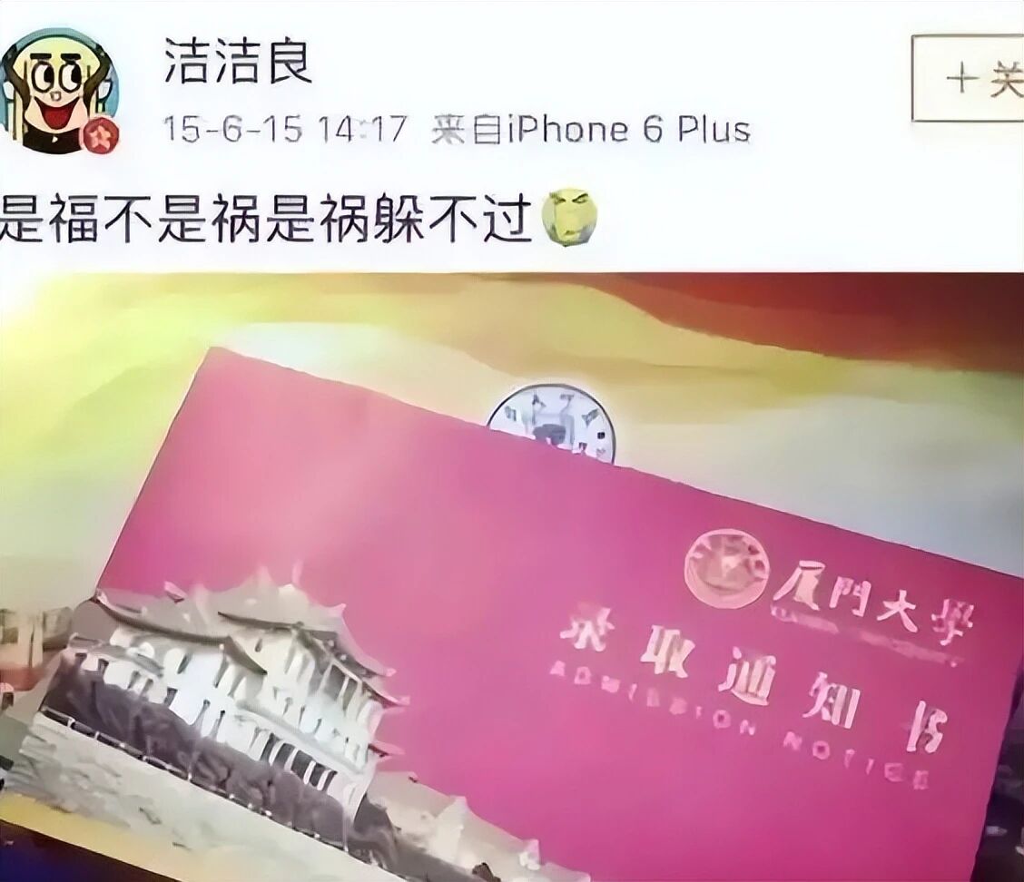 她曾在网络上轻蔑地称培养她的辽宁师范大学为“野鸡大学”,在收到厦门大学录取通知书时,她甚至发文称“是福不是祸,是祸躲不过”,言辞间充满对母校的鄙夷和不情愿。