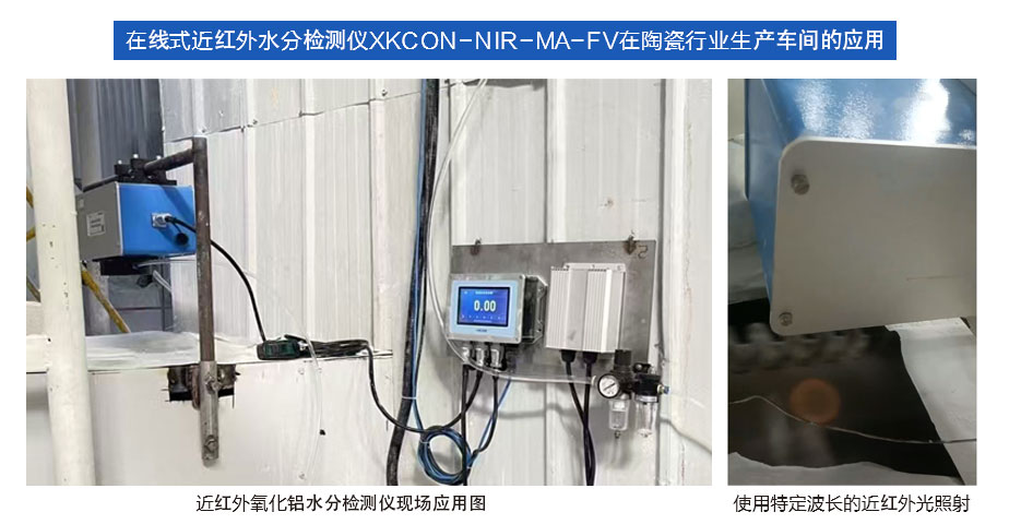基于近红外检测(NIR)技术的氧化铝粉水分检测仪XKCON-NIR-MA-FV具有无破坏性、快速精准、易于实现生产过程的在线控制等优点,可以替代传统的人工检测手段,并进行集成组网,助力陶瓷生产企业实现氧化铝粉水分变化的智能监管。