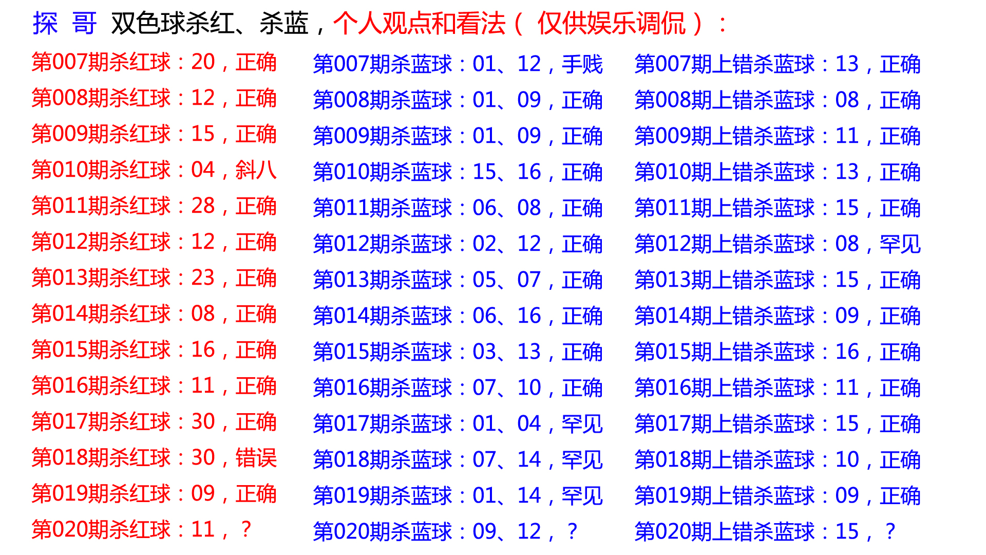 四、本期红球、蓝球杀号(个人观点看法,仅供娱乐调侃):