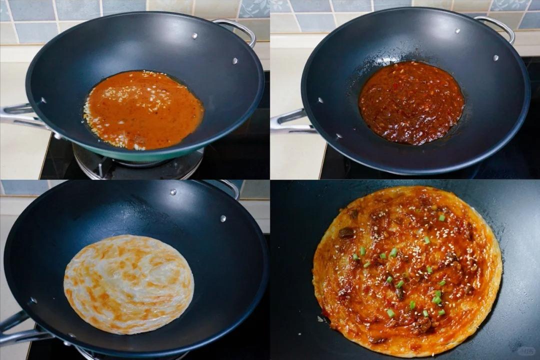 ✅ 亮点:一款无需揉面的酱香饼,用手抓饼就阔以搞定啦!做法简单,外皮酥脆,酱香入味,比买的还好吃哦。营养上,面饼提供能量,酱料中的芝麻、香料补充微量元素,搭配蛋或菜更均衡。口感酥中带软,咸甜酱香层层渗透,解馋又不腻口。