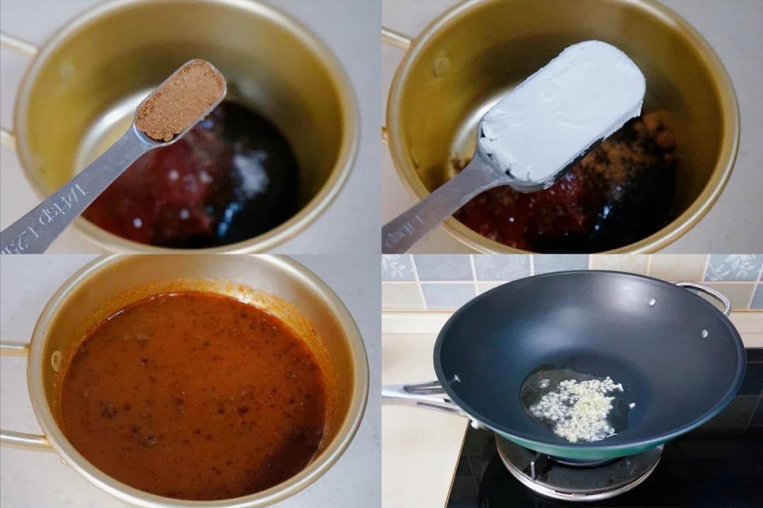 1️⃣锅加热倒油炒香蒜末,倒入碗汁煮至浓稠;