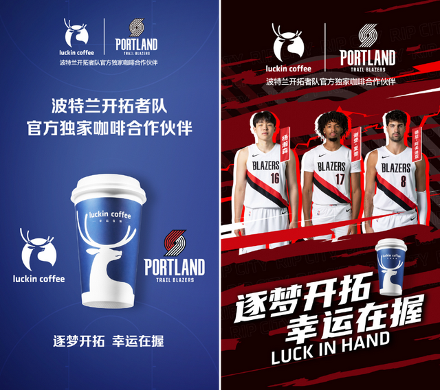 作为深耕体育营销的瑞幸,不出意料地拿下开拓者队,以“逐梦开拓 幸运在握”为主题,官宣成为“波特兰开拓者队官方独家咖啡合作伙伴”。