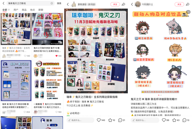这边的王者IP炒的火热,瑞幸转身勾搭起“鬼灭之刃”,预热海报玩起联名新品填空题。粉丝们对号入座,「祢豆子」对应“红豆子/泥拿铁”、「炭治郎」匹配“瑞之抹茶”。除了主角团,还有“鬼杀队”在社交热点场“嘎嘎乱杀”,各种路透周边攻略,撩得啾啾粉心花怒放,站不起身,因为都在“蹲攻略”。