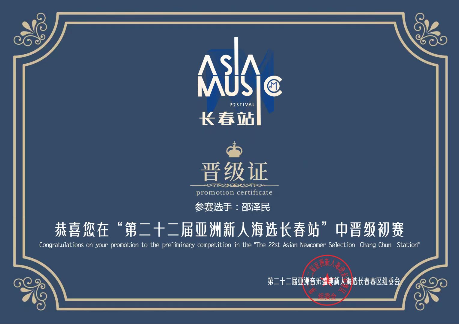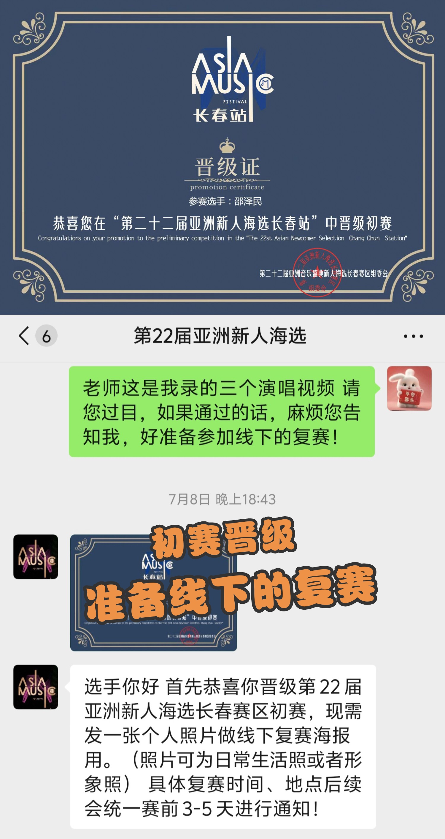 一张小小的晋级证书,承载着阿泽的汗水与梦想,也见证着他的成长与蜕变。成功晋级不是终点,而是新的起点。在未来的音乐之路上,或许还会有更多的挑战和困难,但我们有理由相信,以歌声为翼的邵泽民(艺名阿泽),一定能够冲破阻碍,在第 22 届亚洲新人海选的舞台上逐梦长空。同时,也希望阿泽的故事能够激励更多怀揣梦想的人,勇敢地去追逐自己的热爱,无论前方道路多么崎岖,都要保持初心,永不放弃,因为每一份坚持都值得被期待,每一个梦想都有绽放的可能。