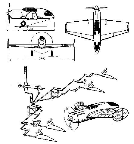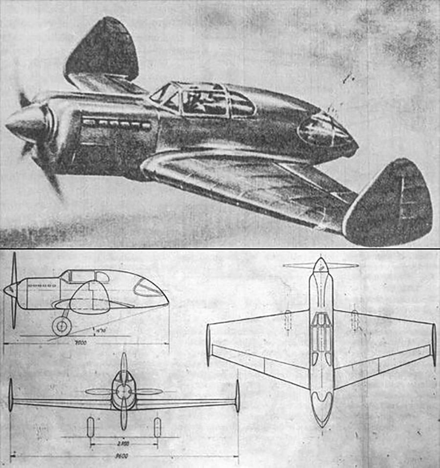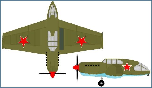 机身采用流线型造型,前部为发动机,中段为驾驶舱,末端为向后的尾炮手舱。炮手操作一个可收放的机枪塔,在平飞时收纳在机身内,作战时候伸出去。动力系统为一台 12 缸水冷 M-34 发动机。当时,它是苏联最强大的飞机发动机:最大功率达 750 马力。发动机驱动直径 3 米的三叶螺旋桨。预计飞机在 4000 米高空的速度超过 600 公里/小时。