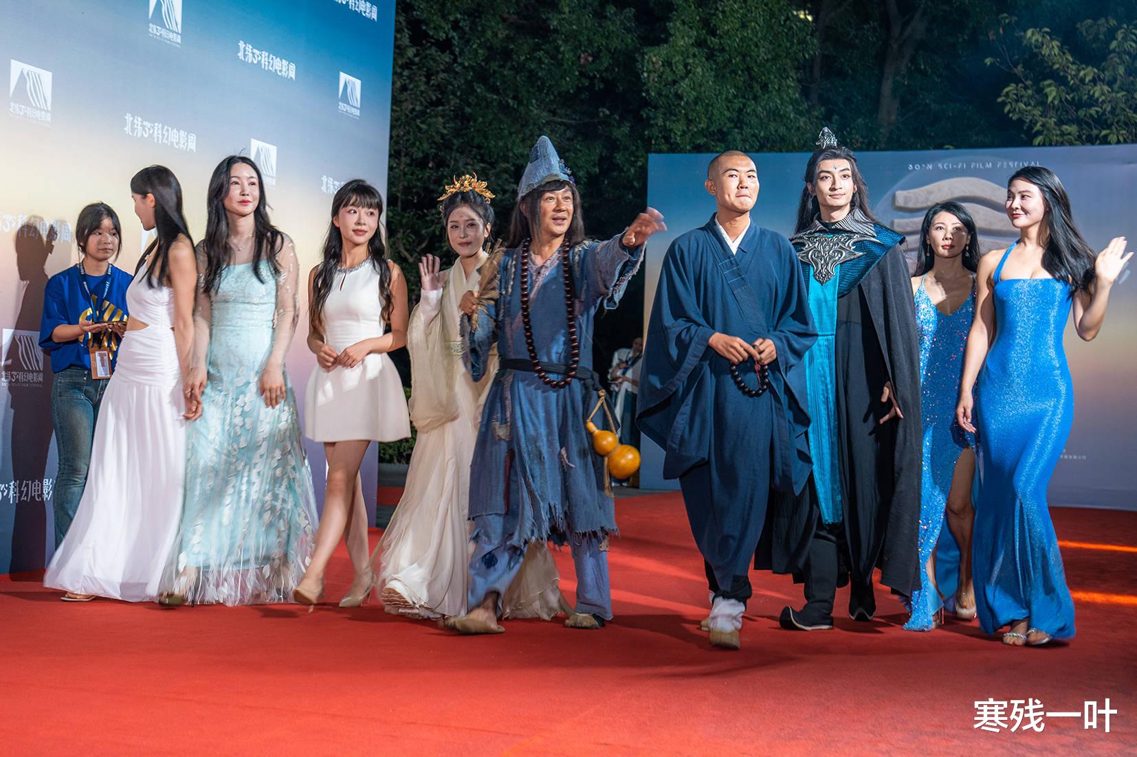 率先踏上红毯的是陈浩民领衔的《济公之降龙现世》剧组。当一众俊男靓女身着精致服饰亮相,现场瞬间爆发出雷鸣般的欢呼。尤为吸睛的是,陈浩民特意带着济公人物装登场,标志性扮相在科幻主题背景下更显别致,瞬间锁定全场目光,成为无可争议的焦点。