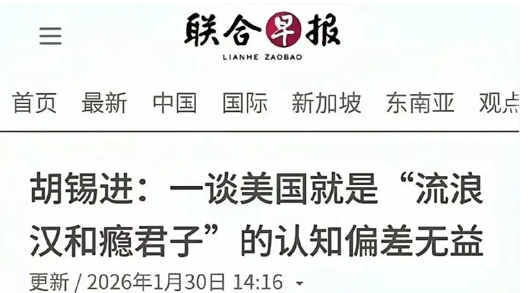 年轻的牢A理论刺破美国梦的华丽滤镜,让胡锡进之流用起了沉默权,这是多么的滑稽可笑。这场从民间社会观察升级为中美跨境舆论博弈的风暴,把一贯以“逢热必评”著称的胡锡进推上了舆论的风口浪尖。胡锡进的反常沉默与后续仓促回应,让胡锡进陷入身份和公信力的双重危机。打破了胡锡进多年经营的“中间派”话语平衡。