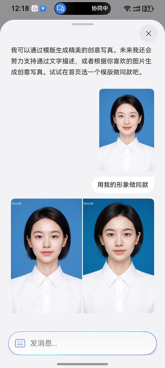 难道要在人生地不熟的校园周边找照相馆,花几百块钱才能搞定吗?自己用手机拍吧,拍照水平又不行!我在宿舍吐槽时,室友一个早已经升级了鸿蒙5的华为手机“老用户”,悠哉悠哉地凑过来说:“别慌,多大点事儿,用小艺照相馆Agent几分钟就全搞定了。”