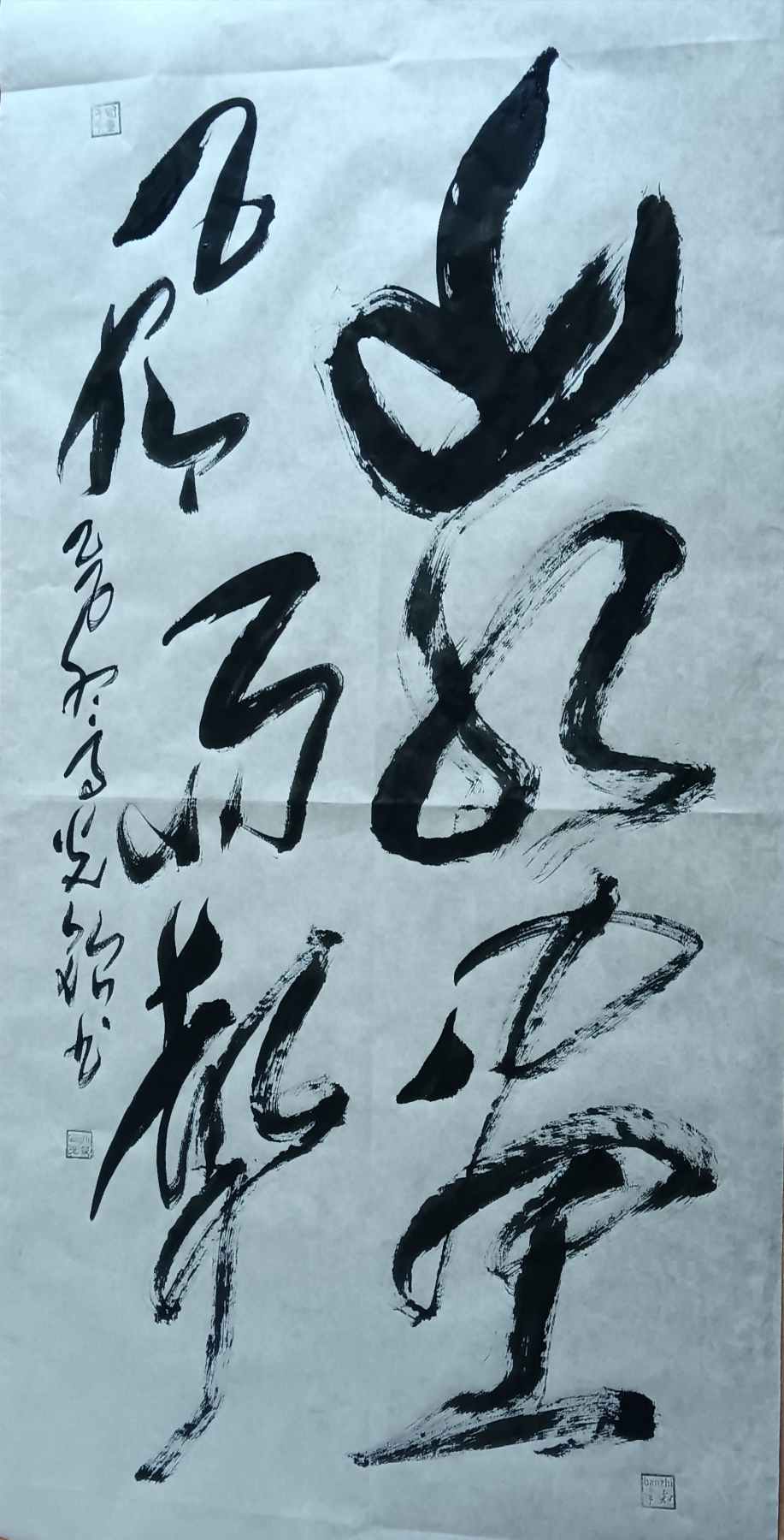 怀素的“清润”基调:怀素草书以淡墨见长,张光银在浓墨中融入清润,避免过度燥烈,使作品在狂放中不失温润,体现“刚柔并济”的哲学。