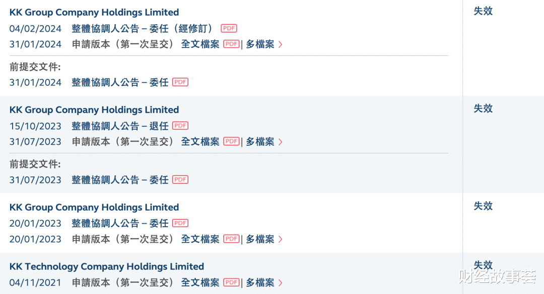概念看似引人,但KK集团的资本之路却并不顺畅。自2021年首次向港交所递交招股书以来,KK集团已四次冲刺上市。2024 年 1 月 31 日,KK 集团第四次提交 IPO 申请,但目前其招股书已失效。