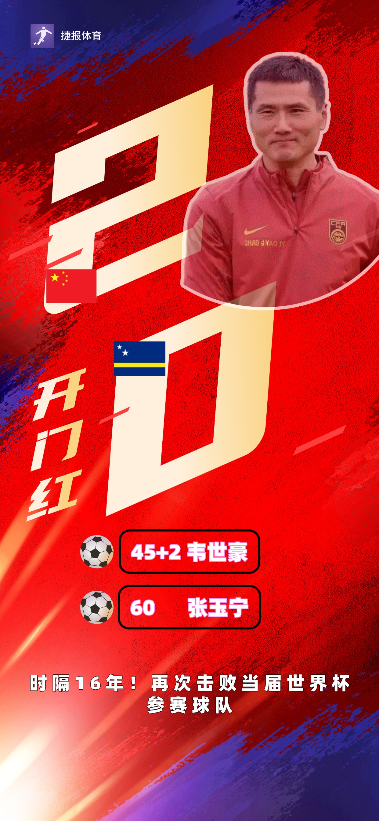3月27日,凭借韦世豪和张玉宁的进球,中国男足国家队在 2026FIFA系列赛中,以2-0的比分击败了库拉索,新帅邵佳一成功取得开门红。