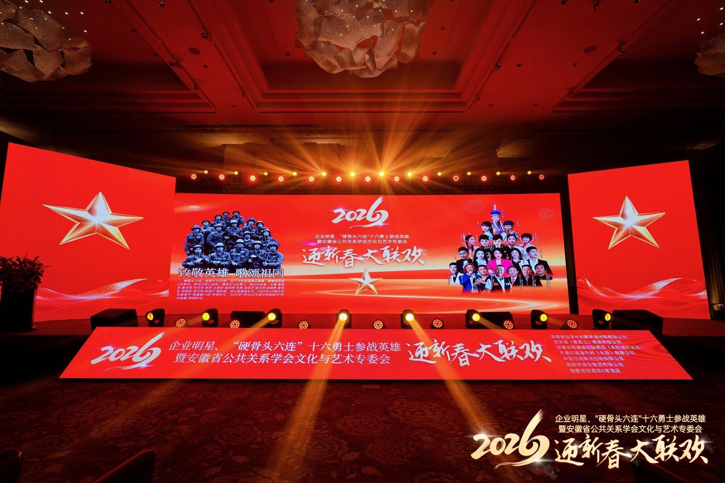 2026年1月31日,企业明星、“硬骨头六连”十六勇士参战英雄暨安徽省公共关系学会文化与艺术专委会迎新春大联欢春晚温情启幕。硬骨头六连多位参战英雄、军政各界领导、企业家代表、书画家及社会各界嘉宾欢聚一堂,以军民联谊的方式共话鱼水深情,同贺即将到来的2026丙午马年新春佳节,橄榄绿与奋斗红交相辉映,谱写了一曲拥军爱军、同心筑梦的时代乐章。