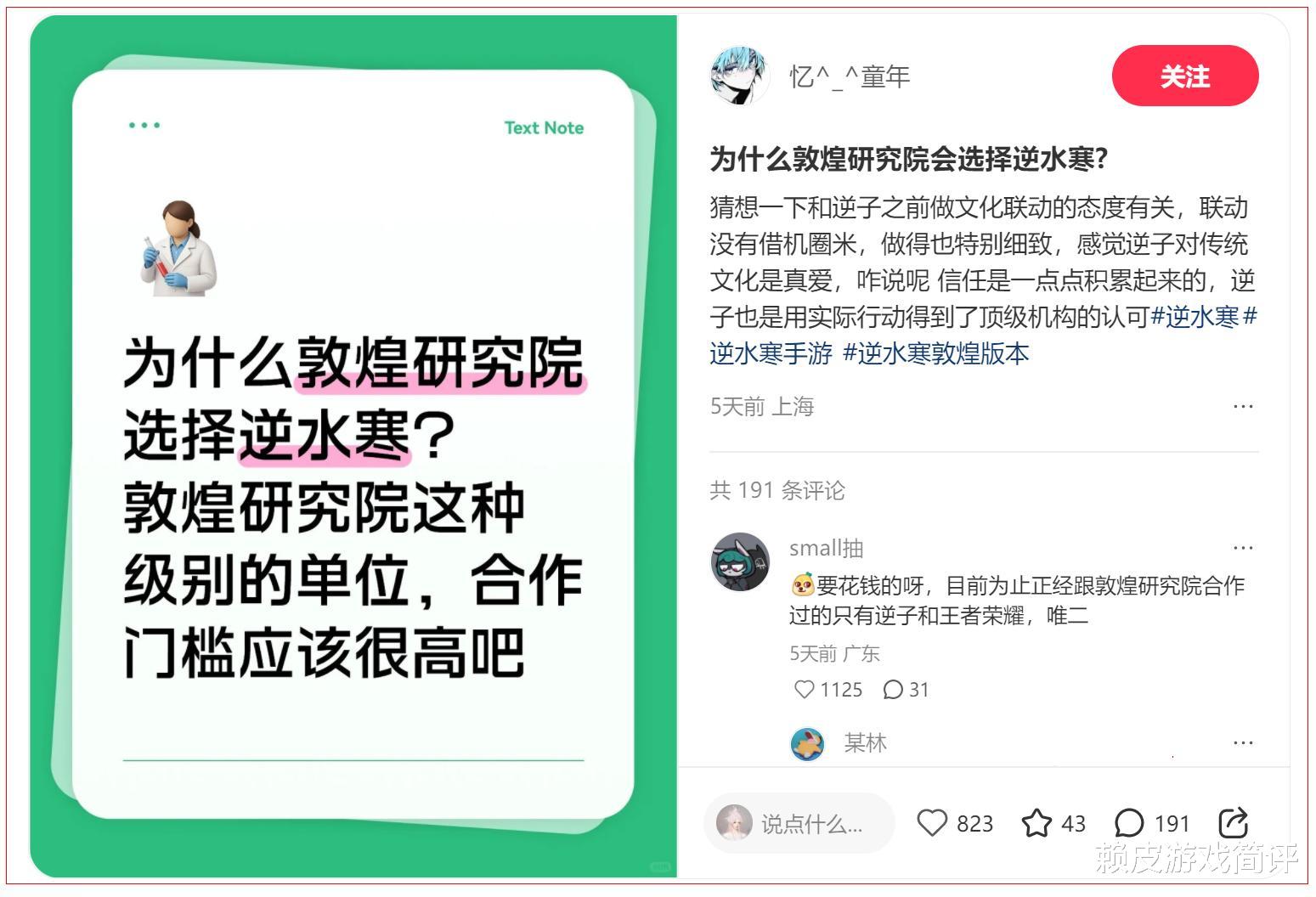 并且《逆水寒》手游打造的“线上敦煌”,还获得了敦煌文旅局特意发文推荐,点赞制作组“让千年前的文物风采鲜活再现”,抖音、小红书等平台上,玩家纷纷分享打卡视频,有人定格飞天彩带飘曳的瞬间,有人晒出与虚拟沙狐互动的画面。