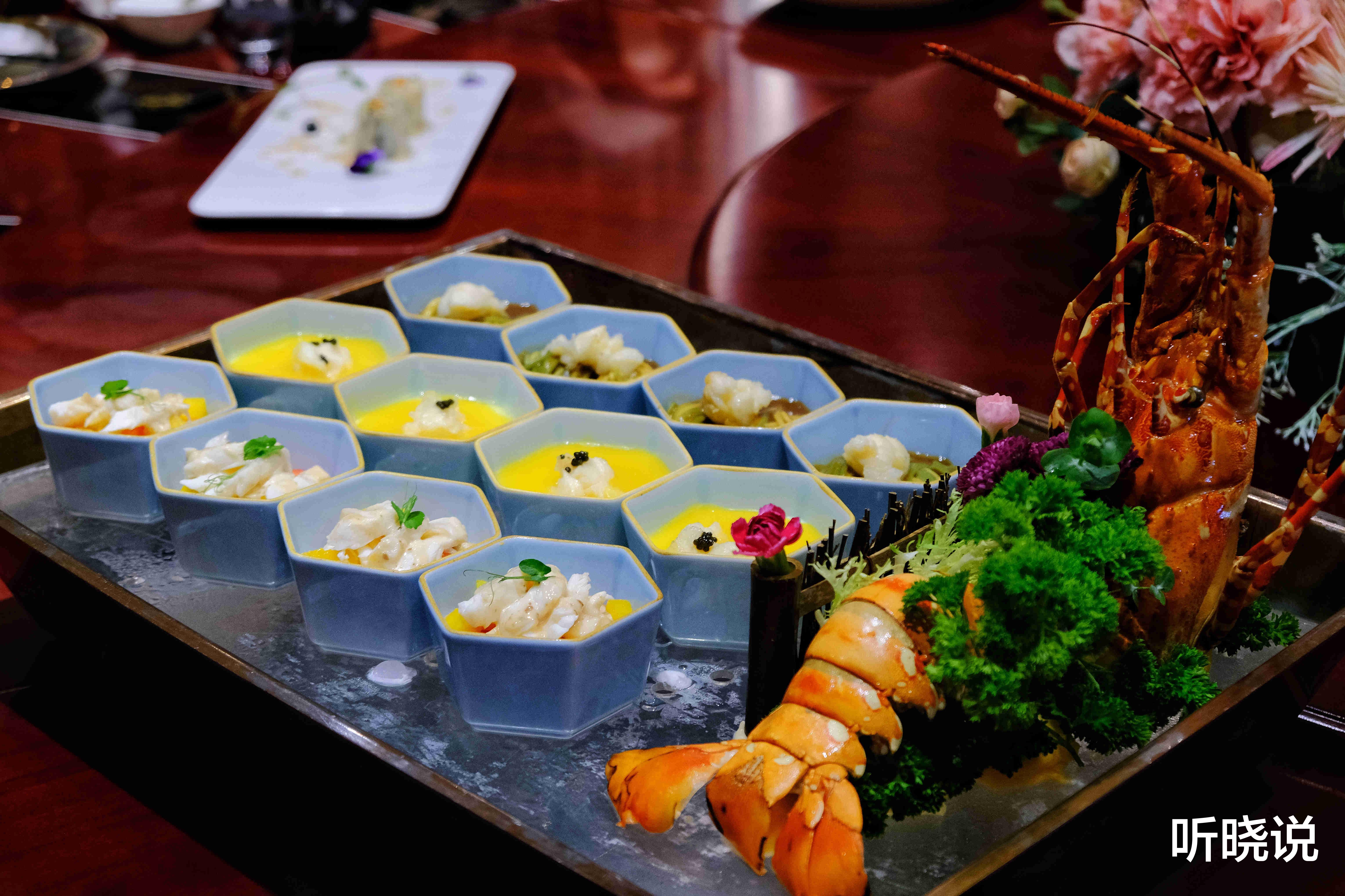龙腾四海映龙虾霸气外露,一上桌满满的气场挡也挡不住。一大只龙虾鲜美无比,看着超级诱人。这道菜是经典的龙虾三吃,既能尝到清爽的龙虾沙拉、鲜甜的龙虾蒸蛋,还能吃到美味的龙虾面,一次吃过瘾!