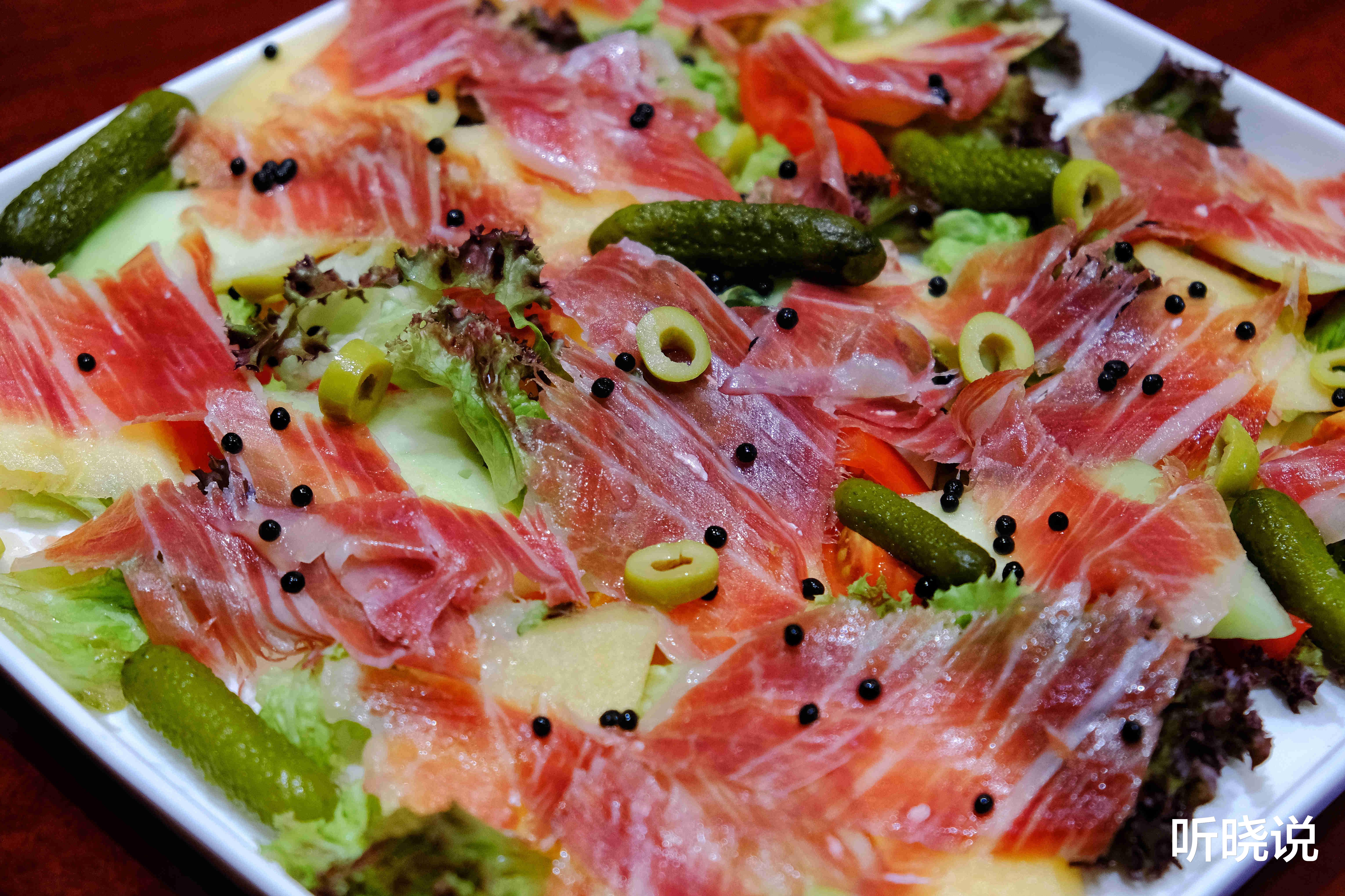 正好赶上仲夏新菜发布,这下大有口福了,不仅可以尝到店里精致的菜肴,还能尝尝由美女大厨现场制作的伊比利亚黑毛猪5J火腿。这道西班牙国宝级的美食,鲜香美味,搭配酸黄瓜和哈密瓜食用是一绝。