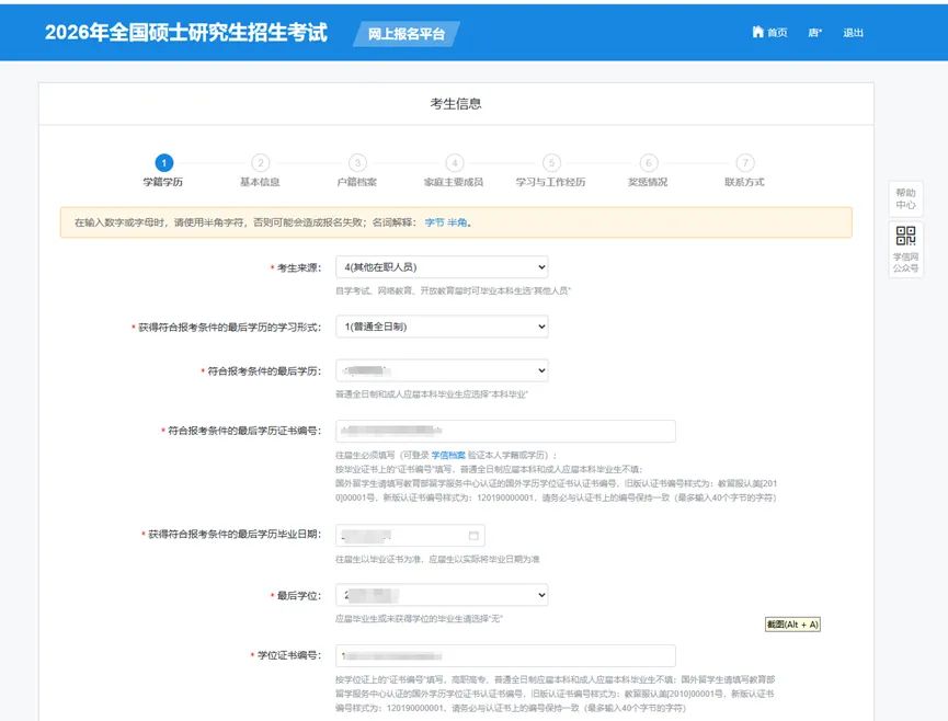 进入研招网报名系统后台,主要是填写“考生信息”与“报考信息”两个重要部分,结合考生们经常咨询的一些问题, 关键信息梳理如下: