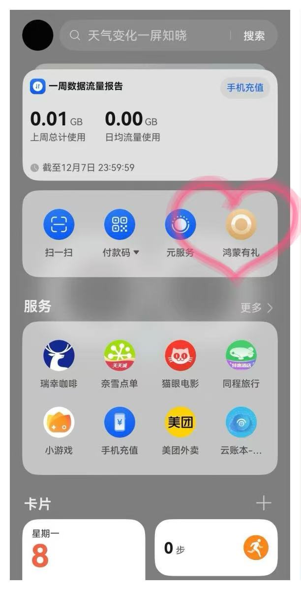 惊喜指路:手机系统升级到HarmonyOS 5.1及以上版本,右滑到负一屏进入【鸿蒙有礼】,每日签到,就会随机掉落现金红包和各种权益包,其中就可能会有芒果TV月卡会员的权益哦~