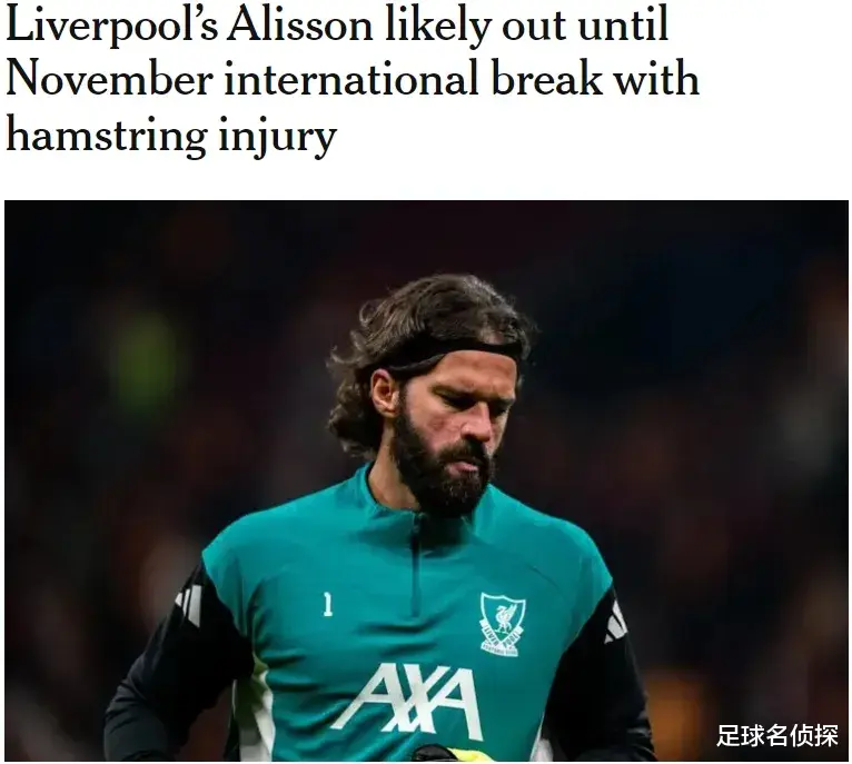 TA记者DO发文,利物浦门将阿利松腿筋受伤,他可能要到11月份的国际比赛日后才能复出。