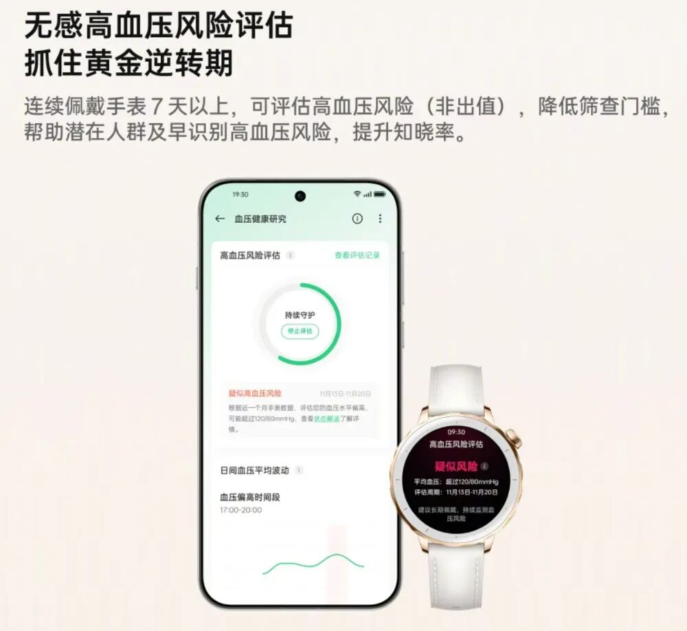 据介绍,用户连续佩戴手表7天以上即可可评估高血压风险(非出值),降低查门槛帮助潜在人群及早识别高血压风险,提升知晓率。