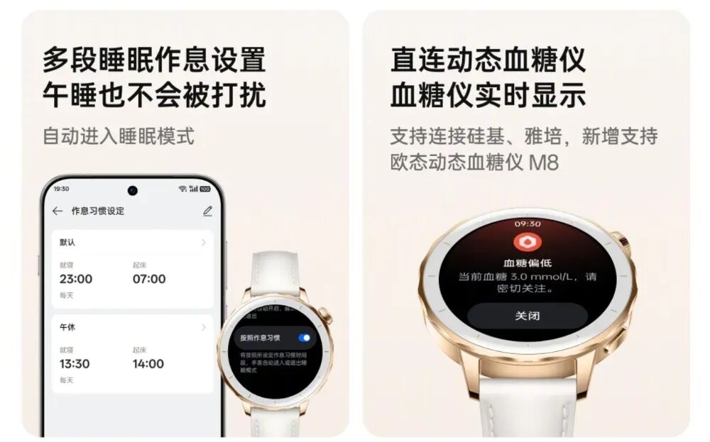 除了血压之外,OPPO Watch X2 Mini还支持直连动态血糖仪血糖仪实时显示,可连接硅基、雅培、欧态动态血糖仪M8,通过手表实时提醒。
