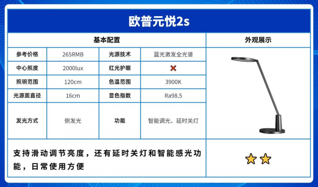 口碑护眼灯推荐第九名:欧普元悦2s(推荐指数:⭐⭐⭐)