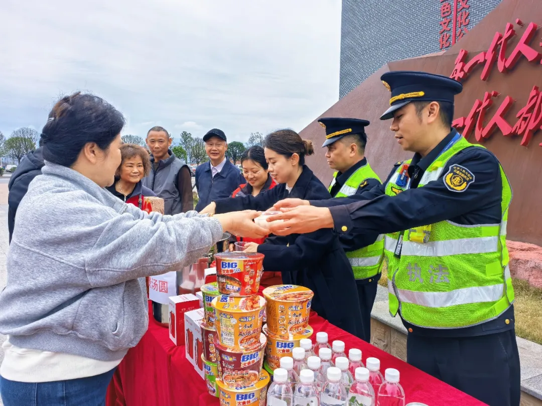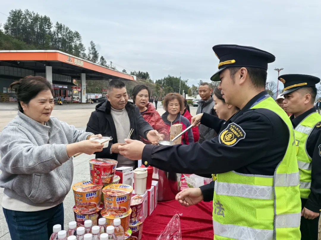 活动现场暖意融融,执法人员早早备好热气腾腾的汤圆,连同矿泉水、方便面等物资,免费发放给过往司乘人员。一碗碗香甜的汤圆,驱散了旅途的疲惫,让奔波在外的群众感受到家的温暖。