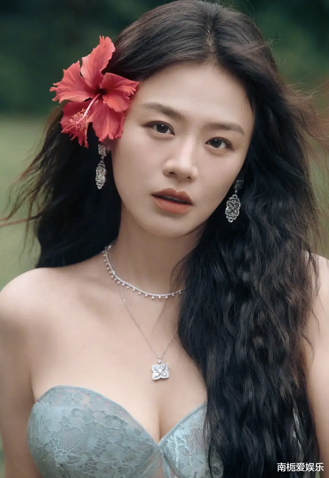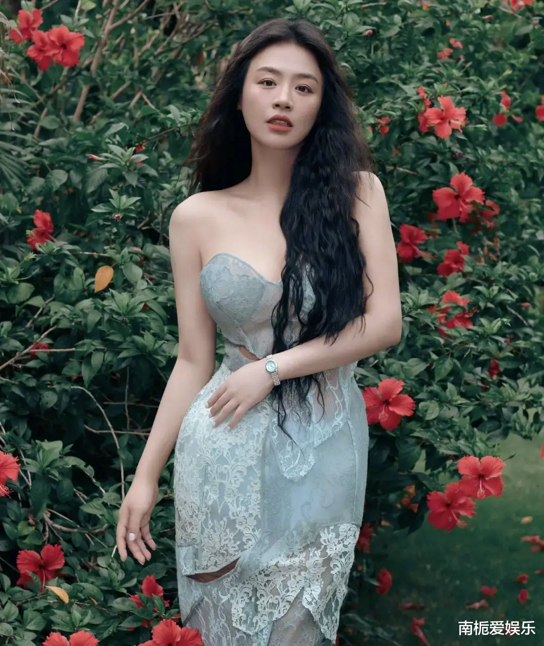 高饱和度的正红色立体花朵被巧妙地点缀于肩头与发间,在沉静的蓝色基调中迸发出热烈的生命力。马思纯凭借自身温婉与明艳兼具的气质,将这组经典配色驾驭得游刃有余。红色花朵大小适中,布局讲究留白,既成为视觉焦点,又未喧宾夺主,成功营造出“明艳不失优雅”的高级氛围,被众多网友誉为“教科书级复古配色”。
