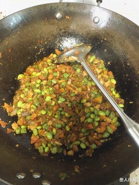 处理馅料:胡萝卜、香菇切丁,与玉米粒炒熟(素版)或加鸡胸肉碎(荤版),加生抽、蚝油调味。