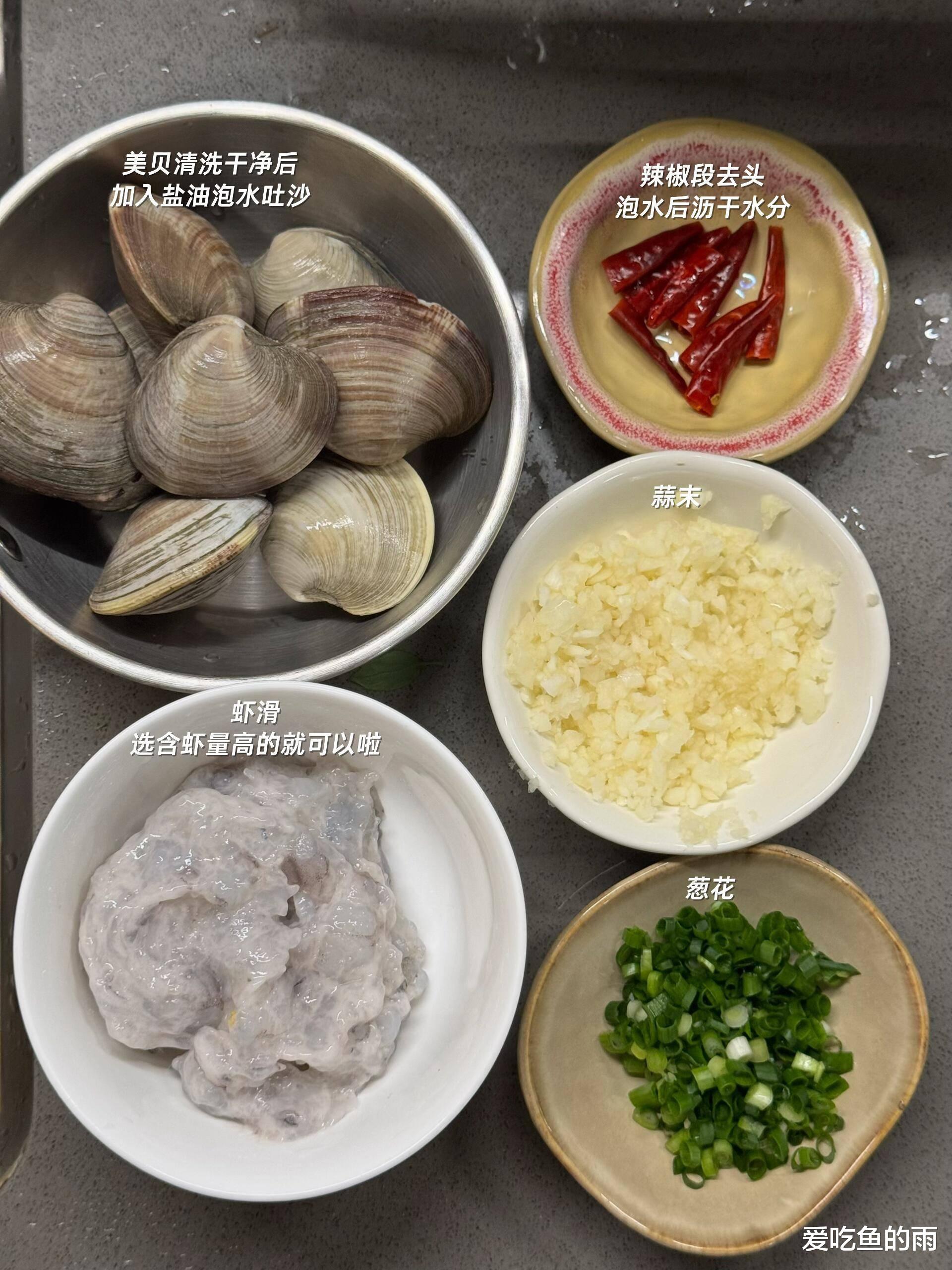 周末逛水产摊,美贝们哗啦啦吐着水花,活像一群穿条纹睡衣的小胖子在泡澡。“老板娘,给挑几个精神头足的!” 竹筐里的虾仁也水灵灵闪着光,脑子里突然蹦出老家灶台边外婆的话:“鲜碰鲜,鲜上天呐!” 今儿就让美贝当小船,虾滑作帆,在蒸锅里驶出一片家常海!