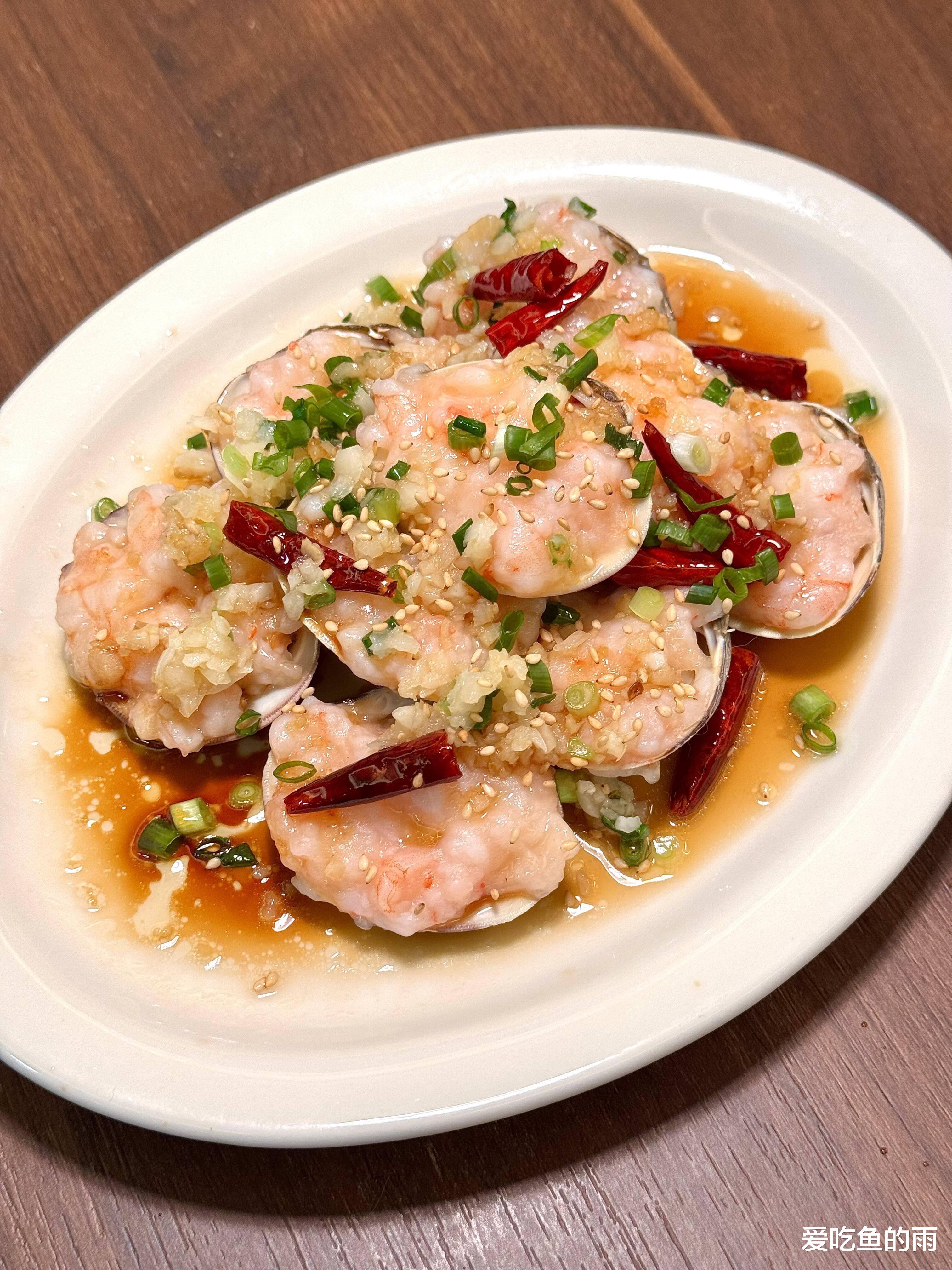 趁热夹起一只贝船,贝肉柔嫩如初春花瓣,虾滑弹牙得能在舌尖蹦迪。芡汁的咸鲜引着海鲜的甜,胡萝卜碎在齿间迸出微甜脆响。最妙是嘬一口贝壳底的汤汁——海潮的精华全凝在这汪金露里,嘬完忍不住咂嘴三回!其实哪需精工细作?不过是鲜物本味的相遇。当虾滑在冰镇中凝出韧劲,当美贝在蒸锅里舒展胸怀,当厨房飘起那缕似有若无的鲜甜,日子便泊进了温柔的港湾。原来最踏实的幸福,是把潮汐锁进贝壳,让浪花在舌尖轻轻拍岸——一口一只小船,载着家的烟火驶向四海八荒的鲜。