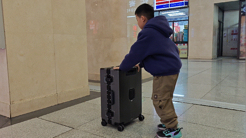 合上后塞满衣服+电脑,左右狂晃10次,拉链连个缝都没崩开!4层德国科思创材质+双层铝框,抗暴抗挤能力直接拉满——这哪是行李箱?简直是“铁甲小宝”!