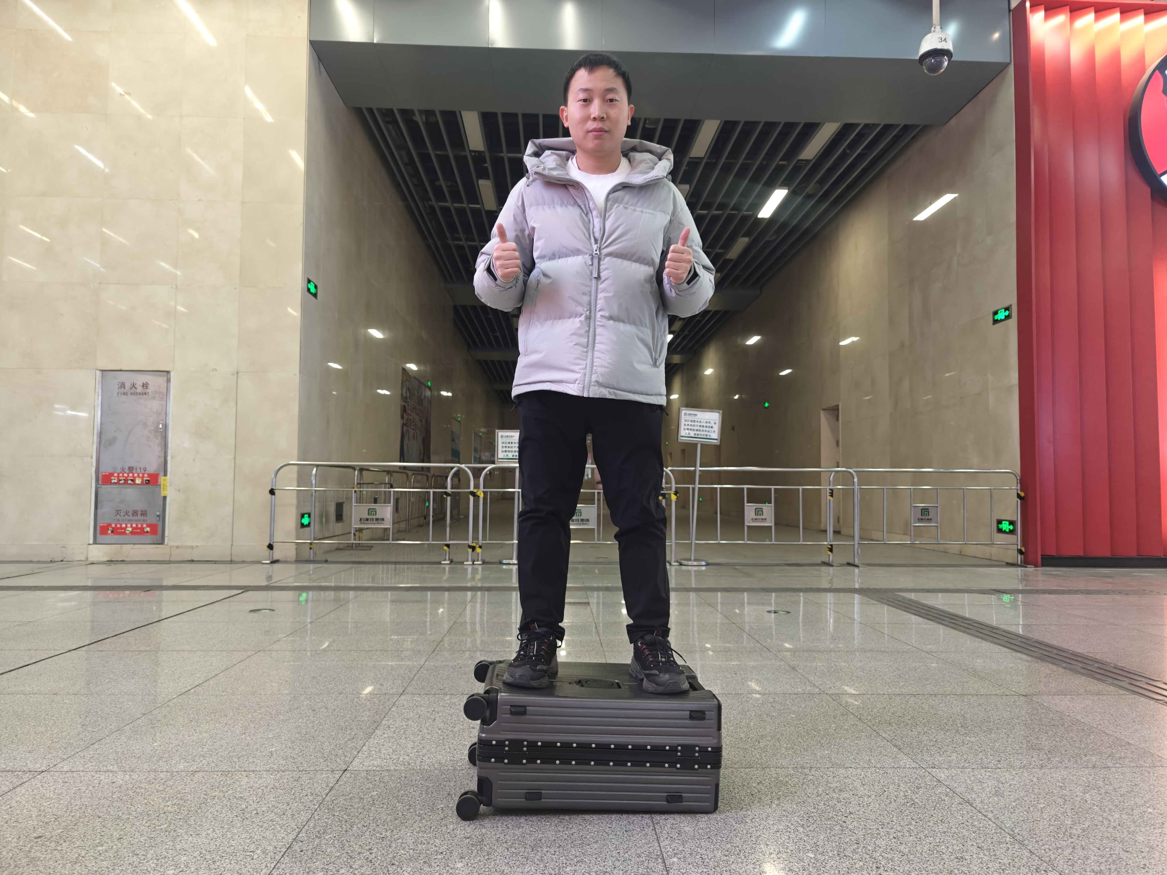 市面行李箱“重颜值轻质量”,用半年就爆箱、轮子卡死、拉杆晃成“跳舞机”。GaKior行李箱直接掀桌:10年抗衰减设计+全金属核心部件,专治各种“脆皮”!200kg承重是啥概念?我自己130斤的重量站上去,箱体纹丝不动!