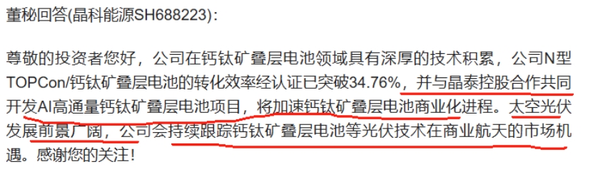 第四,在太空光伏领域,公司N型TOPCon/钙钛矿叠层电池转化效率突破34.76%,并与晶泰控股共建AI高通量钙钛矿实验线,面向太空光伏等场景。