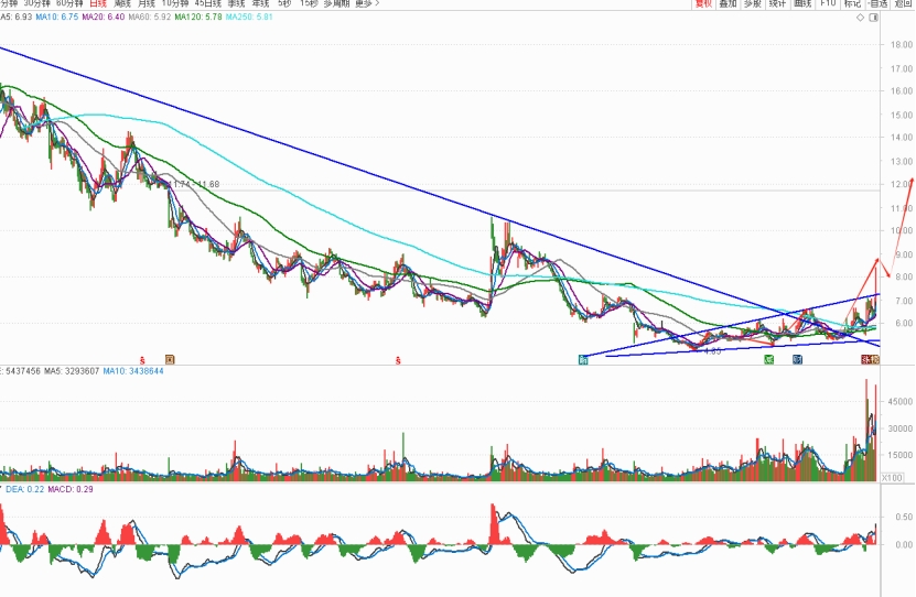 第六,最关键的是,公司股价只有8元出头,较历史高点超跌70%,长达3年多下降趋线被反向突破,逐步脱离底部区域。主力4天时间净流入超16亿元,可以看出资金在疯狂扫货。