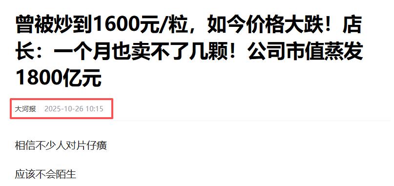曾被炒到1600元/粒,如今价格大跌!店长:一个月也卖不了几颗!公司市值蒸发1800亿元 大河报2025-10-26 10:15