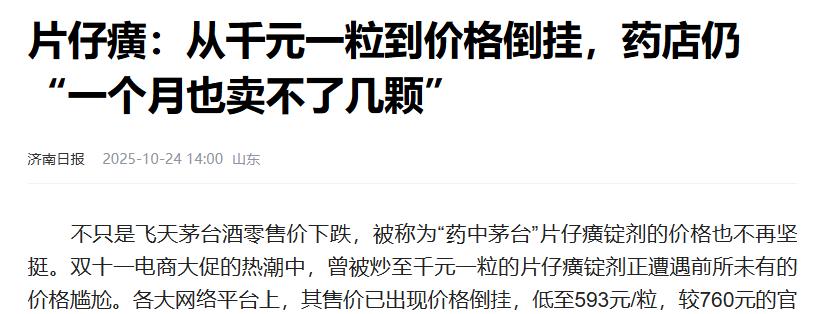 片仔癀:从千元一粒到价格倒挂,药店仍“一个月也卖不了几颗” 济南日报2025-10-24 14:00山东
