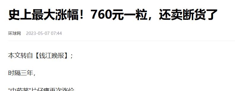 史上最大涨幅!760元一粒,还卖断货了环球网2023-05-07 07:44