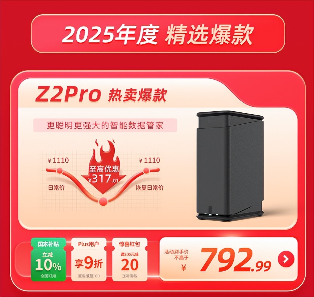 现在赶紧去某东自营旗舰店或某猫旗舰店领券,叠加国家补贴、平台优惠和惊喜红包,把心仪的 NAS 带回家。不管是影音爱好者、办公人士还是家庭用户,这两款极空间私有云都能满足需求,趁着双 11 优惠,赶紧上车吧!