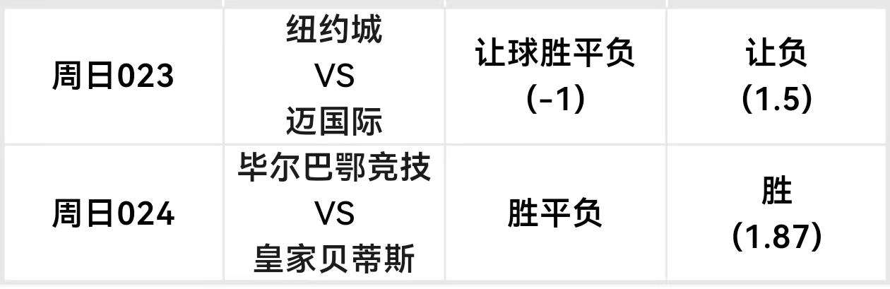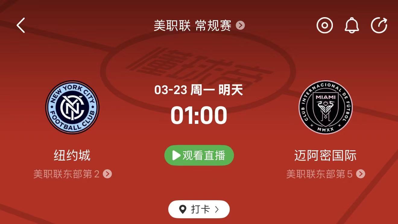 🔹 周日023 美职联:纽约城 vs 迈阿密国际(01:00)